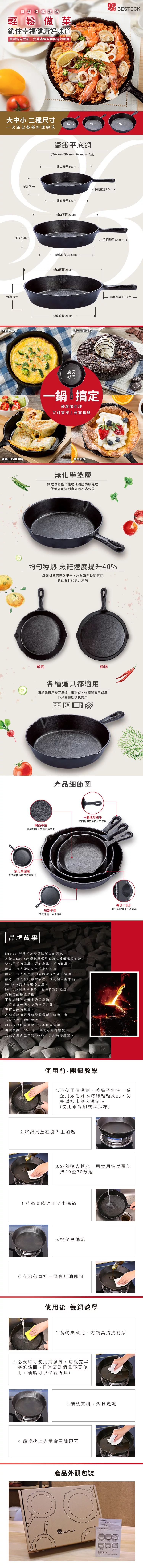 【日本珍珠金屬】日本製單手柄鑄鐵平底鍋20cm