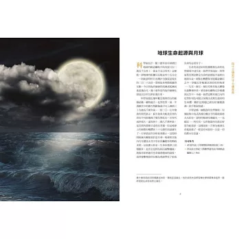 不論是月球的可能形成原因、古人如何利用月球的亮度推估星球之間的距離、儒勒‧凡爾納的科幻小說怎樣啟發航太科學之父齊奧爾科夫斯基、二十世紀美蘇之間的太空競賽、月球的存在證實了愛因斯坦的廣義相對論,再到神農五號火箭的誕生、阿波羅登月任務,以及今日的私人太空公司與未來可能會發生的月球移民,太空生物學家暨科普作家大衛.翁弗拉許博士將帶領我們踏上一趟引人神思的旅程,鋪展出月球的重要里程碑與關鍵時刻。