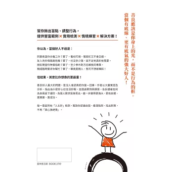 每一章並附有「人太好」檢測,幫助你認識自我、看清陷阱、找出對策,不再「真心換絕情」。