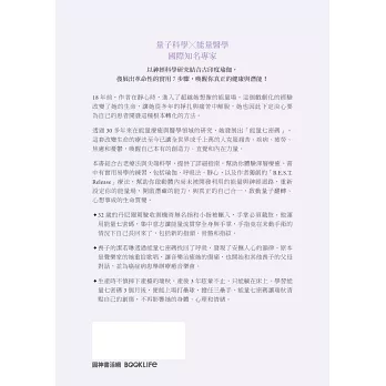 本書結合古老療法與尖端科學,提供了詳細指南,幫助你體驗深層療癒。書中有實用易學的練習,包括瑜伽、呼吸法、靜心,以及作者獨創的「B.E.S.T. Release」療法,幫助你啟動體內尚未被開發利用的能量與神經迴路,重新設定你的能量場,開啟潛藏的能力,與真正的自己合一,啟動量子翻轉、心想事成的生命質變。