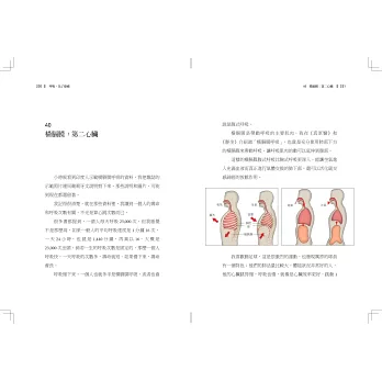 * 清晰的圖文解說,讓讀者一窺「一口氣進入身體,要經歷怎樣的旅程來維繫生命?」的身體奧秘。