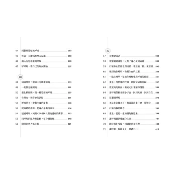 * 以「呼吸」為主題,深入淺出做跨領域的結合。從氣體與血液的生物化學出發,結合身體結構的生物物理與神經系統的運作,深入個人意識的轉變,認識生命的本質。