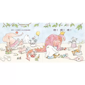 「莎莉.里歐瓊斯這本快樂的書裡,有一群傻里傻氣的生物,包含穿著芭蕾舞裙的大象、大怪物、還有一隻可愛的小兔子……他們全都迫不及待要去上廁所!」-《父母雜誌》