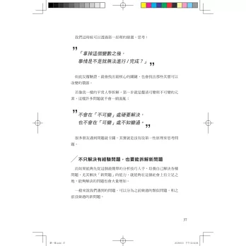 * 拆解的技術是把問題化整為零,讓人能夠有動力去解決問題的技術。