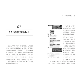 大(或小)語種譯者的工作之道,乃至於譯者也能享有跟作家一樣的「駐村」待遇……作者都會在書中娓娓道來。