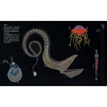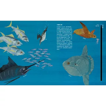 每一跨頁帶出某個深度斷面的生態景觀與扼要說明,快速掌握各個海洋深度的生態大要與知識重點。
