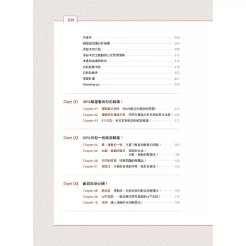 2. 自我診斷掌握弱點│不同於坊間填鴨式的模擬試題,本書的自我診斷能讓你迅速掌握弱點,了解不足的地方並加以補強。