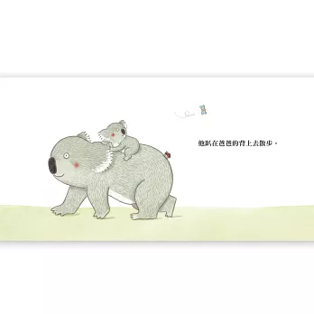 小無尾熊可可最喜歡待在爸爸的背上。他在爸爸的背上吃東西;不小心在爸爸的背上尿尿了;就算去洗澡,他還是黏在爸爸的背上。相當依賴爸爸的可可,看到漫天飛舞的蝴蝶,難得地踏出了探險的第一步……