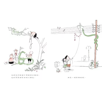 ▎繪本大師湯米.溫格爾的經典作品!簡約的構圖,加上生動的姿態與表情;明快的黑白線條,配上淡綠色與一點點紅色,讓整本書呈現清新淡雅的風格,即使出版至今已超過六十年,也歷久彌新。