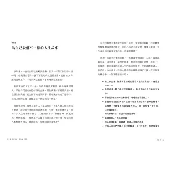這本自傳體的書,從多元面向分享身為傑出領導人在歷練後的珍貴心得,值得現代人好好拜讀。——莊淑芬 共想聯盟願景長、台灣奧美共同創辦人