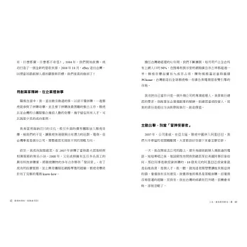 這不只是自傳,還是一部台灣網路創業史。整本書就像英雄故事一樣有起有落,無論是職場新人、高階經理人、創業者都能找到對應在自己身上的些許啟發。——林裕欽 Dcard創辦人