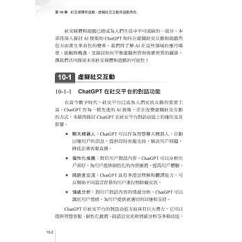 書籍的中後半部分,筆者透過大量分析,展示了 ChatGPT 如何與人類互動,提高工作效率,並協助人類應對日常挑戰。同時,也不避諱地探討了這些技術可能帶來的風險和挑戰,如機器偏見、隱私問題和失業等,並就如何應對這些挑戰提出了建議。