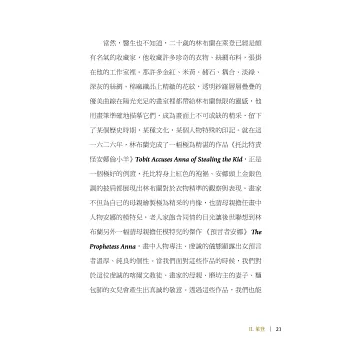 韓秀情感飽滿的筆尖,刻劃出一個極為清晰的林布蘭側影:溫和而堅毅,自信而孤獨,並始終帶著幾分傲骨。無論是年少有為受盡眾人追捧,還是中年落魄遍嘗世態炎涼,他始終不改其志,也正是這樣一位勇敢的先行者,方能引領塞尚、梵谷、透納等無數藝術大師拜倒在他的畫前。
