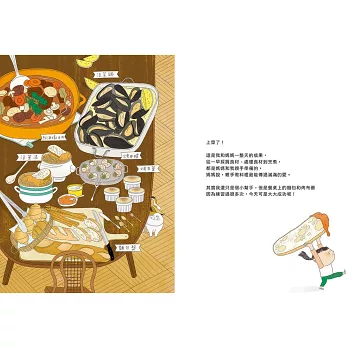 1. 故事畫面充滿生活痕跡及細節的插圖,並且以家人煮食聚餐的溫暖畫面,讓親子感受到家是眾人生活且彼此相依的重要場景。