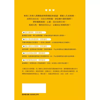 *在這個充滿壓力、步調緊湊的社會裡,這本書能讓你坐下來幾分鐘,後退一步,花一點時間觀察自己,思考一下眼前的追求是否合理,並讓你以平靜的心邁出下一步。