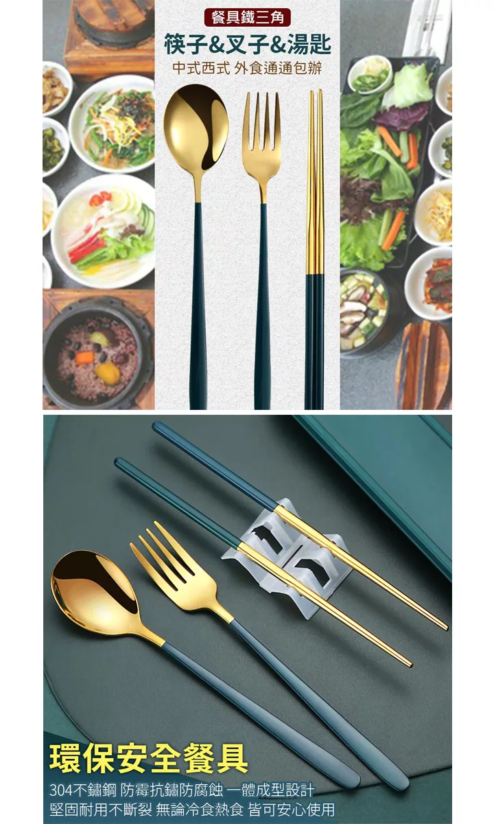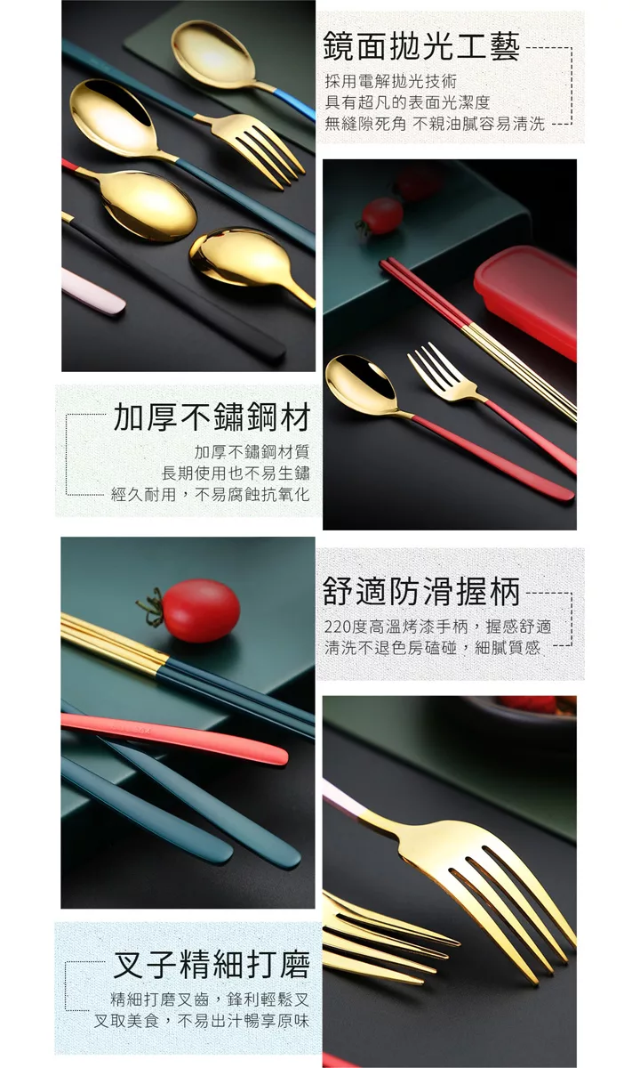 【EZlife】304不鏽鋼歐式便攜餐具四件套 金綠