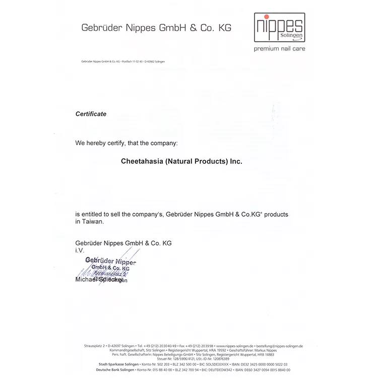 優越的品質讓 Nippes Solingen 的產品進駐德國超過一萬間的藥局與藥妝通路,也進一步擴張外銷市場,至已佔全公司超過60%的銷售額,足可見精湛的技藝早已獲得世界的肯定。
