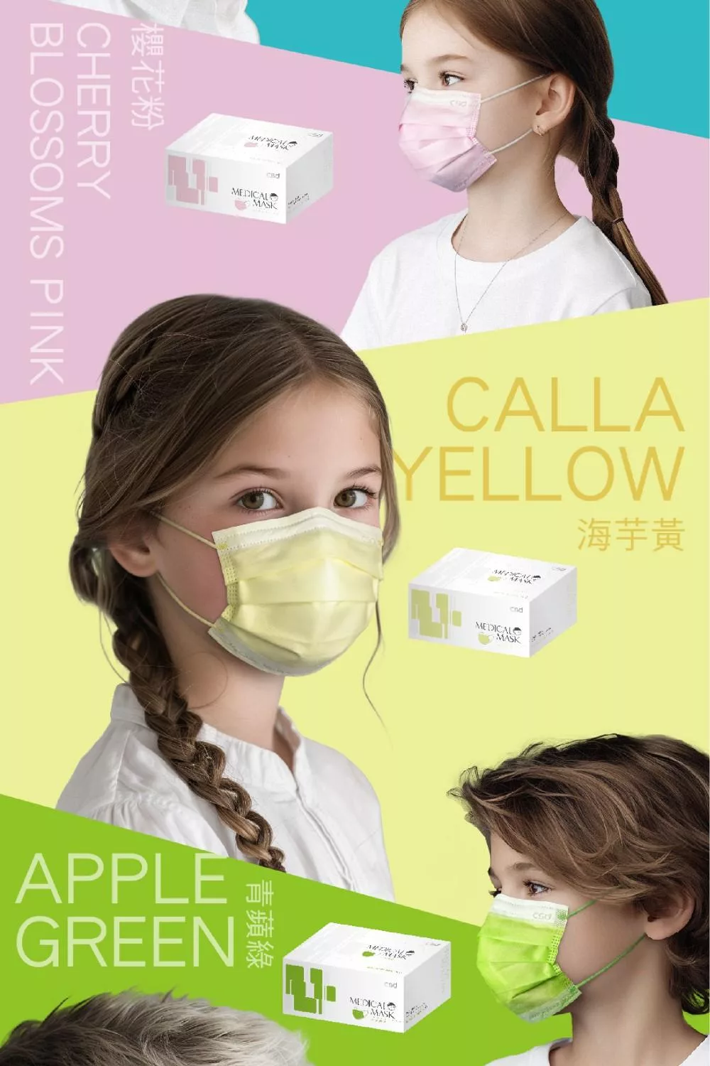 【CSD】中衛醫療口罩-兒童平面-月河藍+炫綠 (30片/盒)