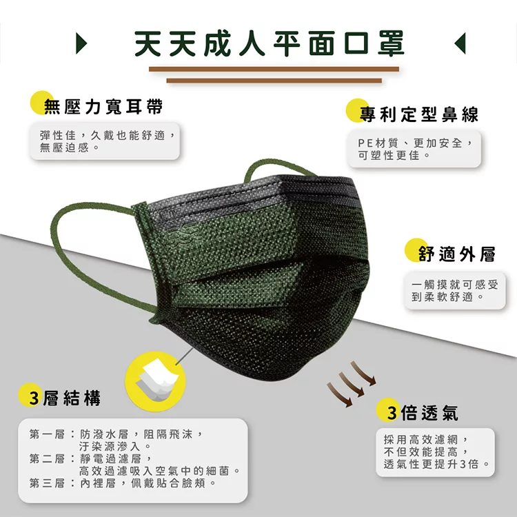 【CSD】中衛醫療口罩-成人平面 酷黑(50片/盒)