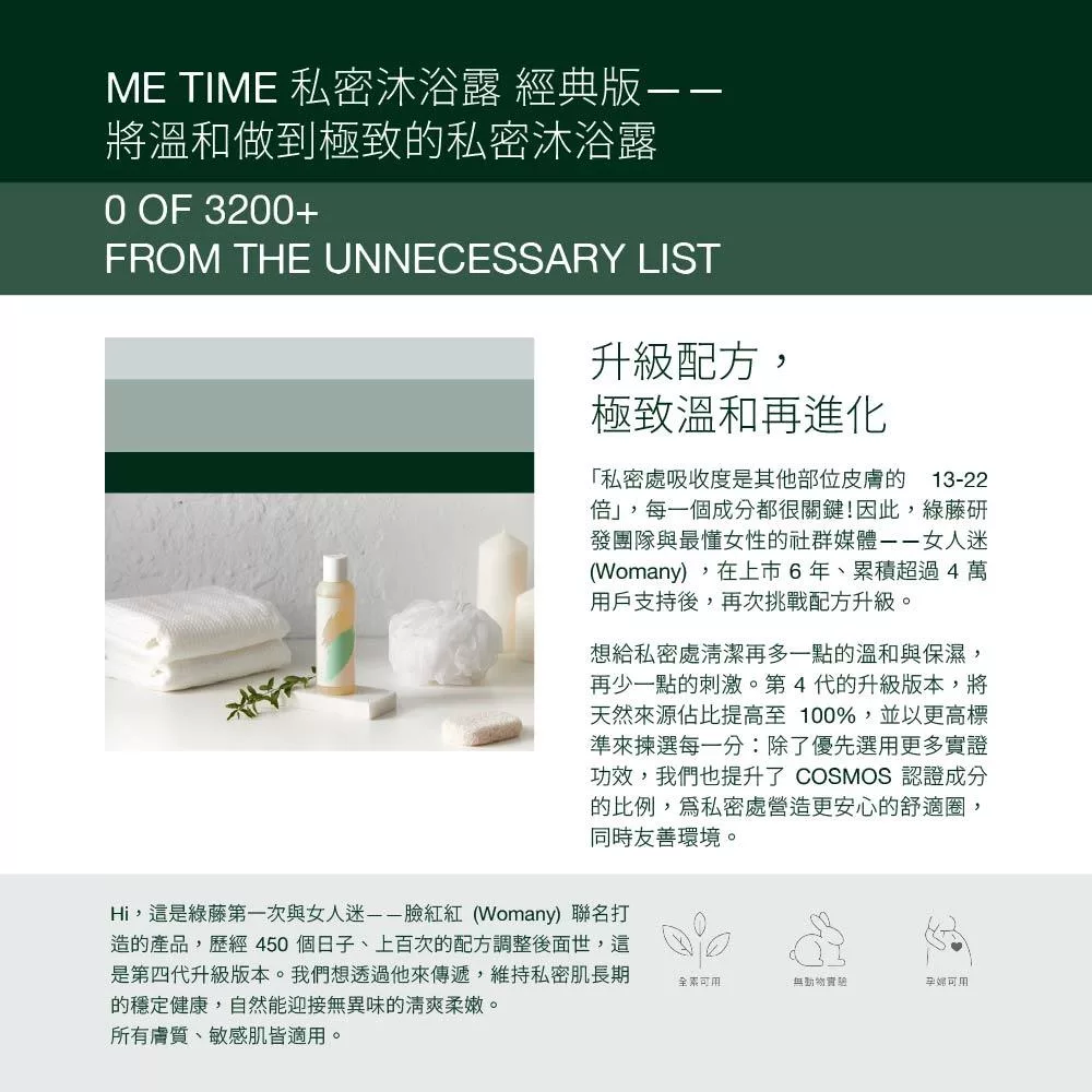 【綠藤生機 Greenvines】me time 私密沐浴露 經典版 150ml ( 將溫和做到極致的私密沐浴露 )