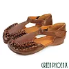 【GREEN PHOENIX】女 便鞋 包頭涼鞋 包鞋 平底鞋 編織 簍空 T字 丁字 沾黏式 EU35 咖啡色