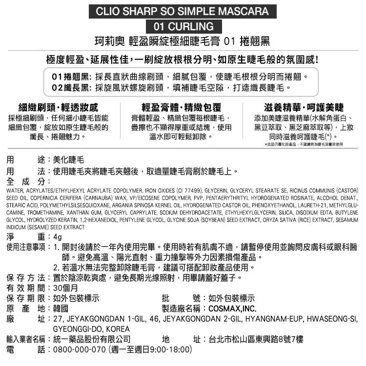 CLIO珂莉奧 絕色玩美纖翹防水睫毛膏 01自然黑