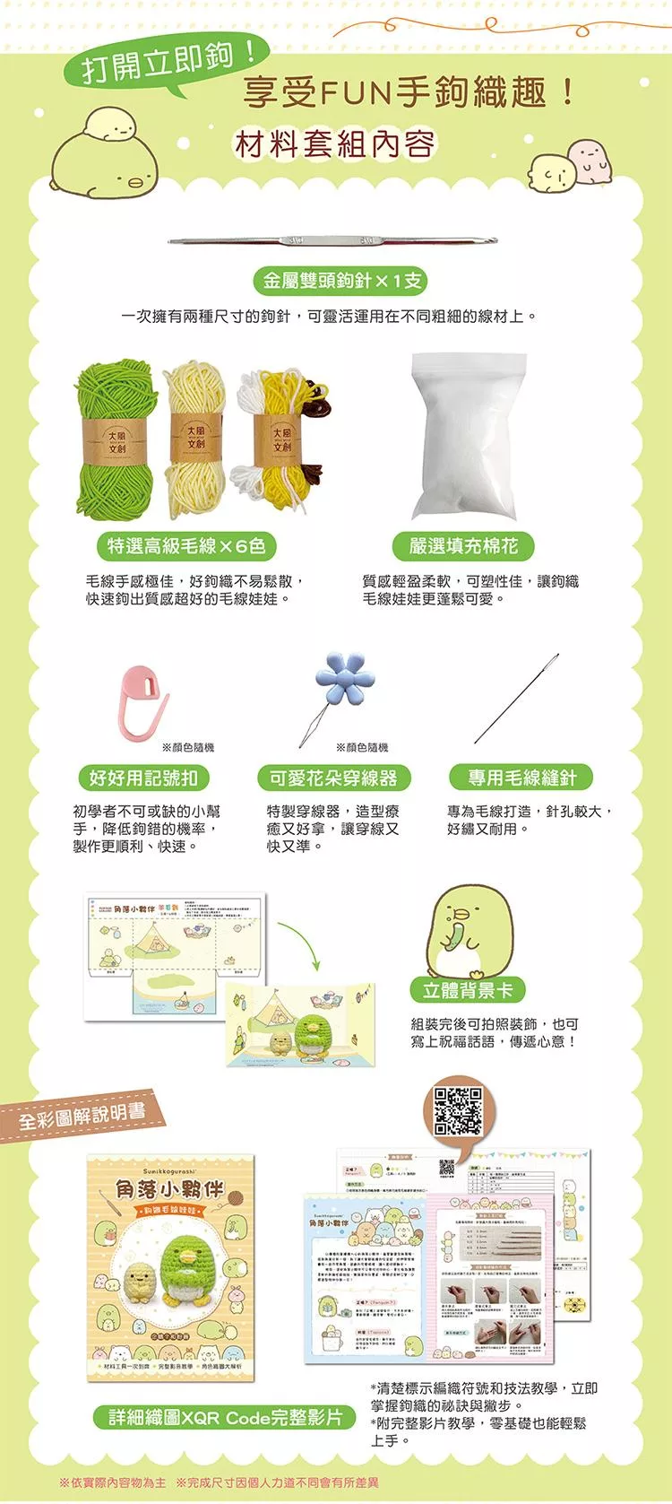 【HobbyEasy】角落小夥伴鉤織毛線娃娃(附鉤針超值全材料包套組,含立體背景卡) 企鵝?&粉圓
