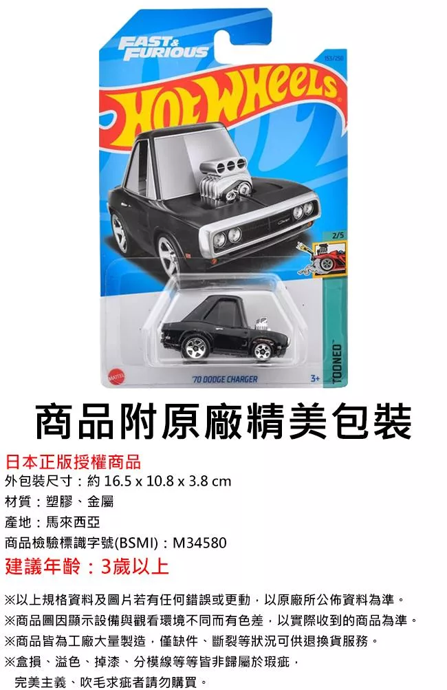 【日本正版授權】風火輪小汽車 Hot Wheels 玩具車 - 70 道奇 CHARGER DODGE(黑)