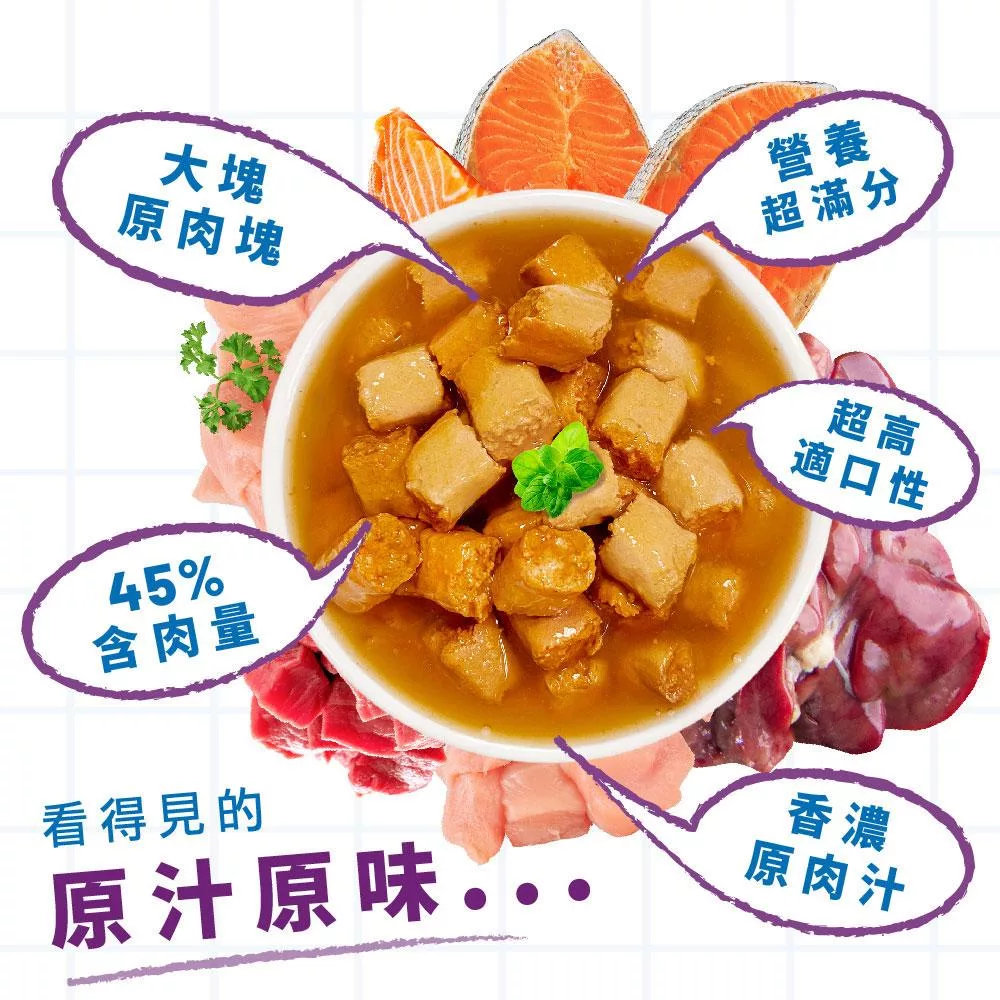 主成份:肉類和動物副產品45%(新鮮雞肉最少10%,新鮮火雞肉最少10%),蔬菜副產品,礦物質