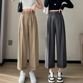 【Jilli~ko】窄版捲邊西裝褲女九分直筒褲設計感休閒闊腿褲 L-XL J11977  L 卡其色