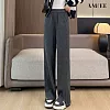 【AMIEE】設計感百搭顯瘦闊腿褲(KDPQ-9478) XL 黑灰