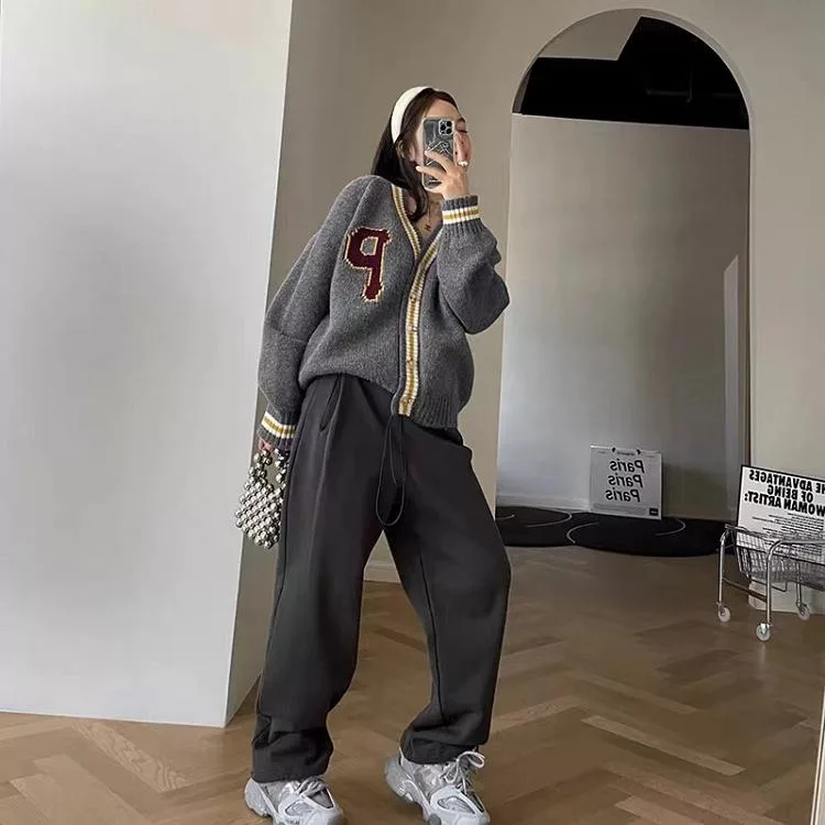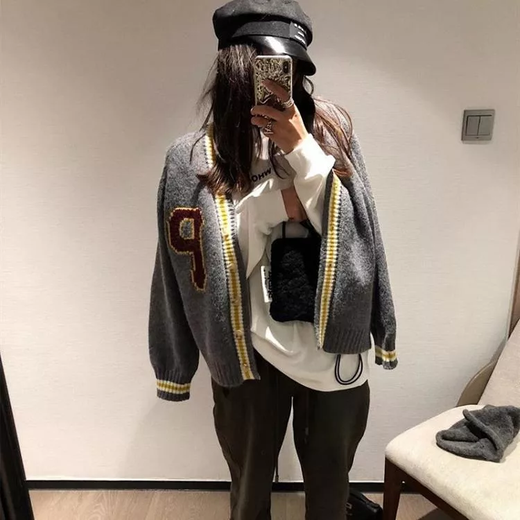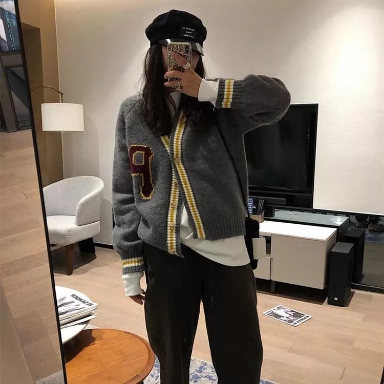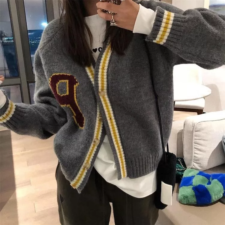 【Jilli~ko】學院風V領休閒寬鬆針織外套女 J12074  FREE 深藍