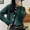 【Jilli~ko】復古麻花造型短款圓領針織開衫 J11131 FREE 深綠
