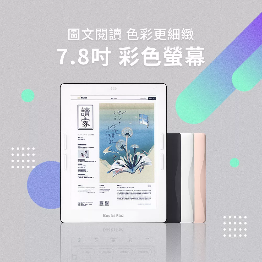 顯示螢幕:7.8吋 E Ink Kaleido™ 3 升級 FastGLR 專利快刷技術