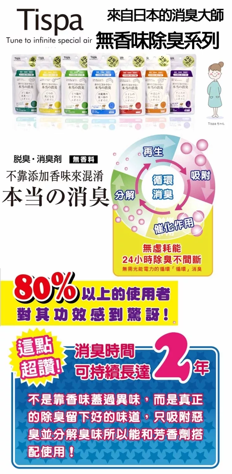 * 本商品特殊吸臭材質於日本加工中國包裝, 為總經銷商正式商檢查驗進口, 請安心購買使用; 請勿任意購買仿間或拍賣網, 來源不明之TISPA仿製品, 可能無效且有害環境與人體!