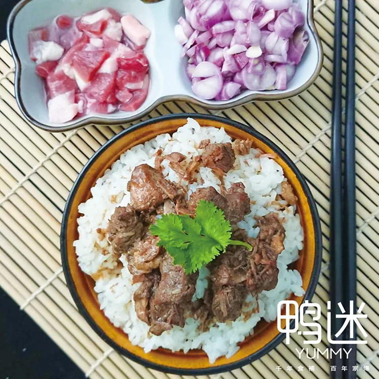 古早味鴨肉燥以傳統工法製成,厚切鴨肉塊的做法不同於坊間豬肉燥,滷出鴨肉的鮮甜,卻不肥膩。將雲林在地紅蔥頭炸成金黃的紅蔥頭酥,將蒜末爆香後加入現宰鴨肉、紅蔥頭酥及主廚配方一起費時熬煮,肉燥散出的香氣透出蔥香及醬香。