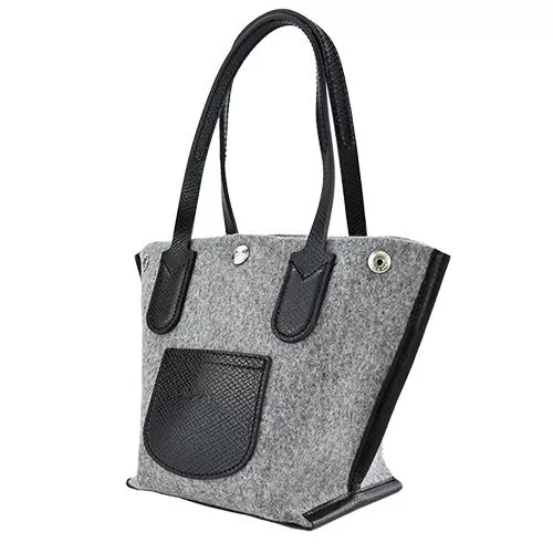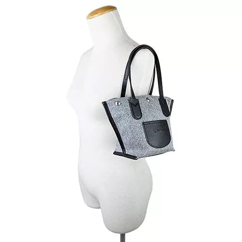 LONGCHAMP ESSENTIAL系列羊毛拼接帆布撞色前口袋肩背包(迷你) 酒紅
