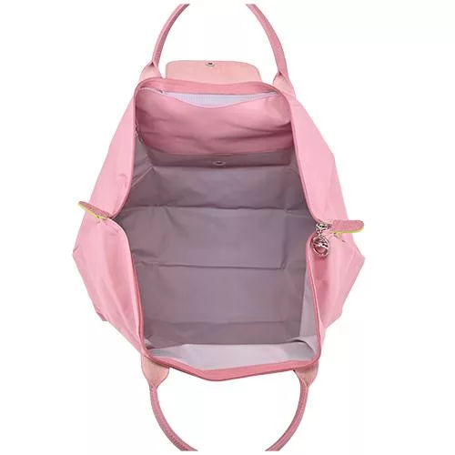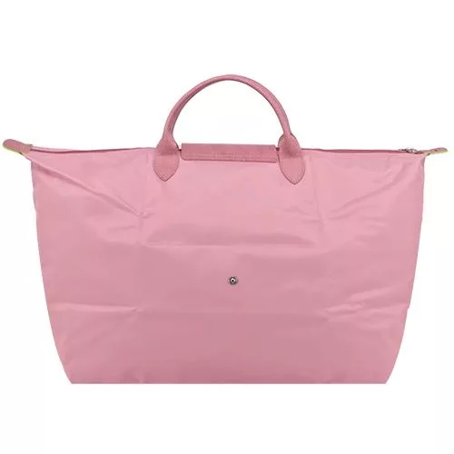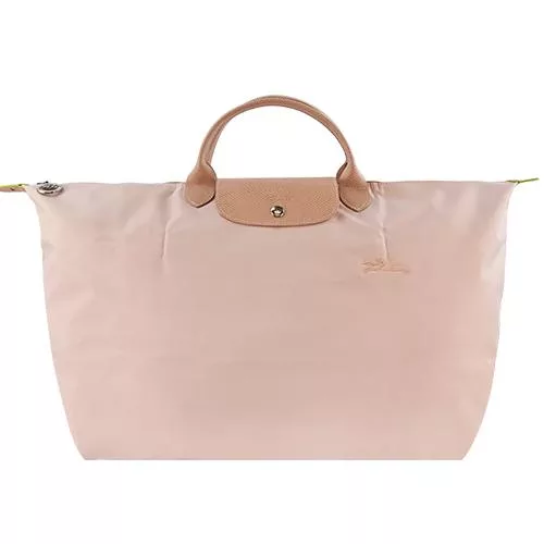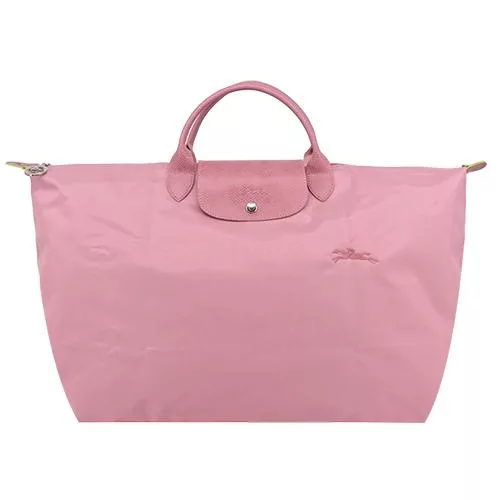 LONGCHAMP LE PLIAGE GREEN系列刺繡短把再生尼龍摺疊旅行袋(大) 紅石榴