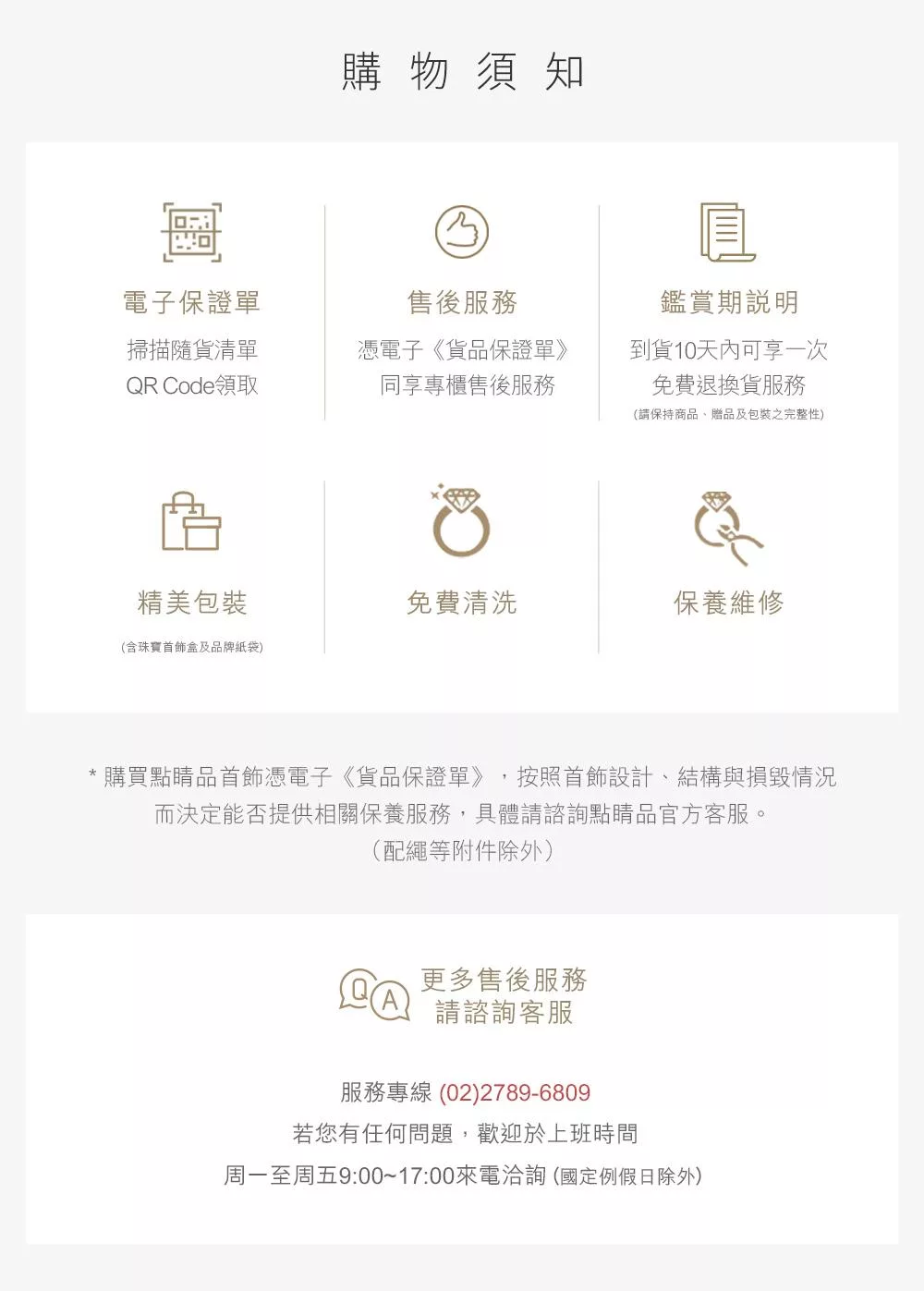 ●包裝配件:珠寶首飾盒、精緻提袋、電子保證單。
