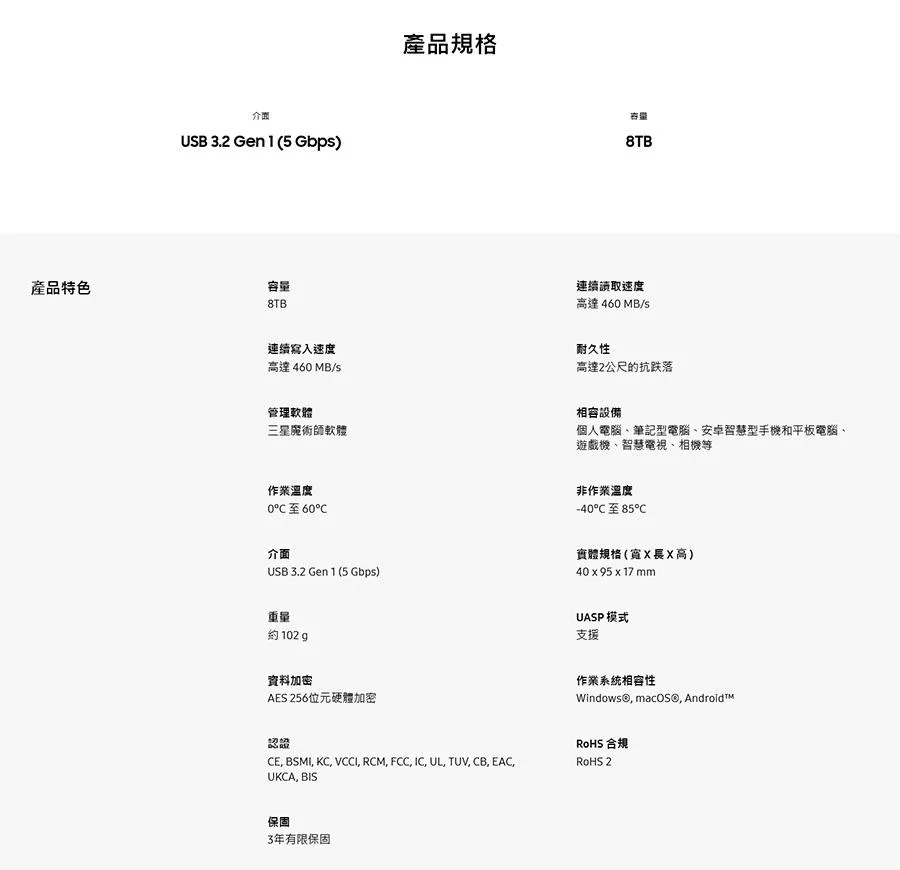【SAMSUNG 三星】T7 2TB USB3.2移動固態硬碟(公司貨) 靛青藍