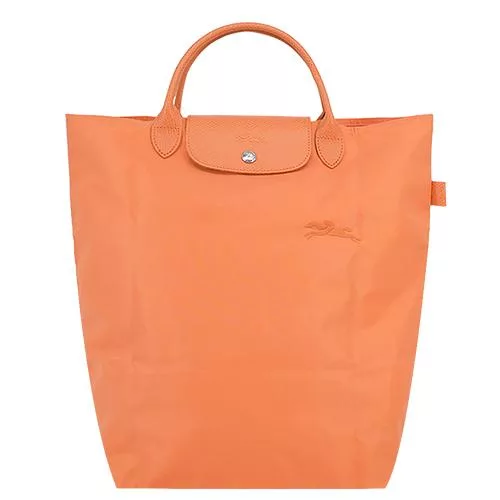 LONGCHAMP LE PLIAGE GREEN系列刺繡短把再生尼龍摺疊旅行袋(大) 紅石榴