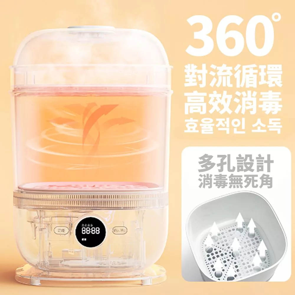 3.「消毒」功能:蒸氣溫度可達100度C,3D循環熱流消毒更全面,SGS檢測殺菌率達99.9999%。