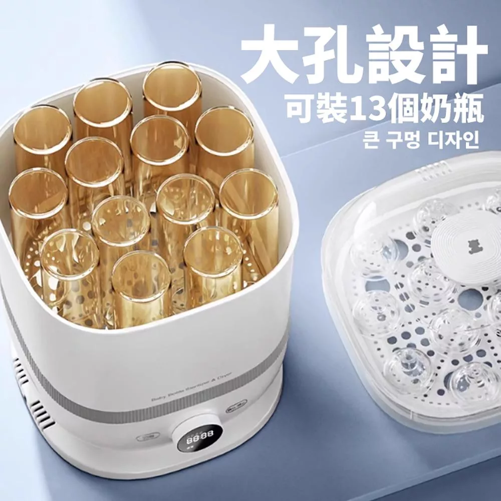 11.分層大空間:桶身可放9支390ml寬口高奶瓶或13支標準奶瓶,桶身有標準/高奶瓶/儲存/蒸食四種空間模式自由組合。
