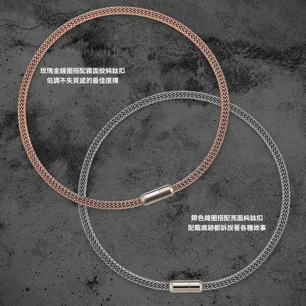 例:銀色線圈亮面扣-50cm+玫瑰金色線圈霧面扣-45cm