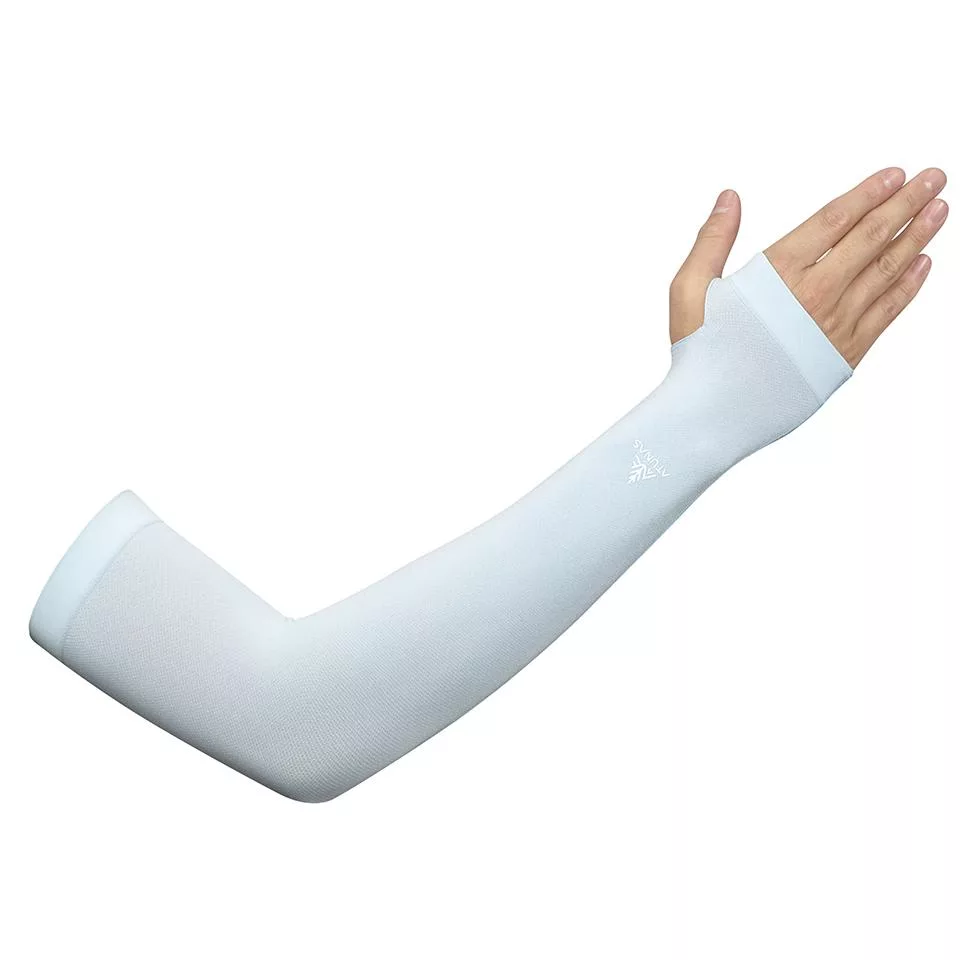 日本原裝-紫外線對策接觸冷感速降5℃防曬涼爽成人指孔袖套 -紫色