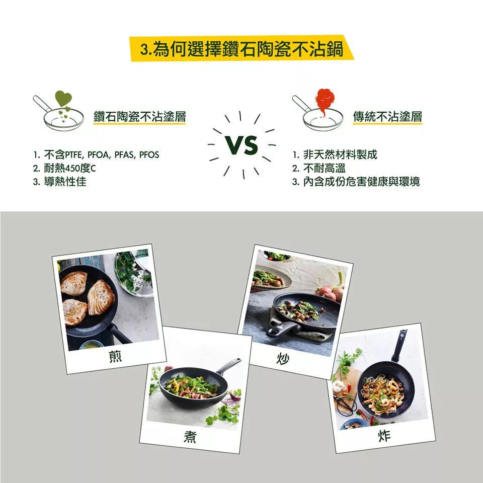 【鍋太后】無塗層不沾黏陶瓷鈦鍋/鈦晶陶瓷雪平鍋/單柄炒鍋 24cm