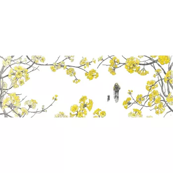 然而,誠如作者周見信所言:「悲傷不好嗎?也許歲月終將教會我們,悲傷沒有不好,它會重新以悲憫的姿態來到面前,好讓我們學著接納過去那個悲傷的自己,然後看見更好的自己。」所以,故事尾聲,一隻小黑狗來到老人身邊,在接納與否之間,老人的選擇,為自己枯槁的日常,重新注入了真實的、有溫度的生命陪伴,他們一起齊步往前,確認彼此將會是未來生活中重要的夥伴。此刻,串聯故事軸線的黑白圖像,也在一幅澄黃花朵綻放的圖畫下,告訴我們:一段溫暖的、具色彩的生命轉機即將展開。