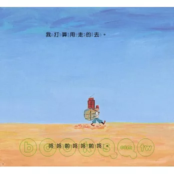 其中有趣的是,旅人在等待的過程中,想聽聽音樂解悶,於是打開收音機,收音機正播放著一個不曾聽過的音樂,這個音樂有著奇怪的節拍「咚咚啪咚 咚啪咚」,不管是在什麼時間,收音機裡的音樂總是那一首,不斷反覆著「咚咚啪咚 咚啪咚」、「咚咚啪咚 咚啪咚」……這代表了旅人等待的心情嗎?還是作者想純粹搞笑一下呢?不論是什麼原由,這個節拍替這個故事增添了一個特別的閱讀節奏,在等待中度過的每個分秒、發生的每個事件,似乎都可以與這個節拍呼應,讓讀者在閱讀的過程中,彷彿可以聽到這個節奏,從這個節奏體會旅人等待的心情,感受文字流動的韻律,也可以單純的跟著覆誦這個節奏,覺得有趣而微笑。