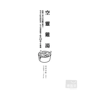 《空靈雞湯》是居家必備的人蔘錦囊,出外踏青的精神伴侶,改變千萬網友的智慧箴言,讀了它,你也可以再造生命的空靈!
