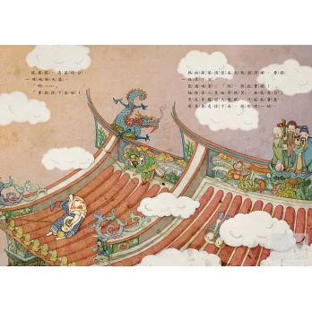 ●介紹寺廟屋頂的剪黏藝術,書後並有「剪黏好朋友」小單元,讓大家認識剪黏與交趾陶的不同與各自的特色。